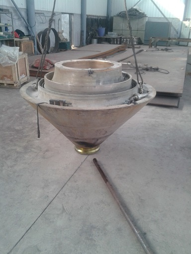 2014-08-25客戶HP500圓錐破碎機(jī)動錐體自行更換球頭時(shí),由于安裝不到位,導(dǎo)致無法運(yùn)行,運(yùn)到我公司維修。由我司技術(shù)人員拆除球頭,重新安裝成功。