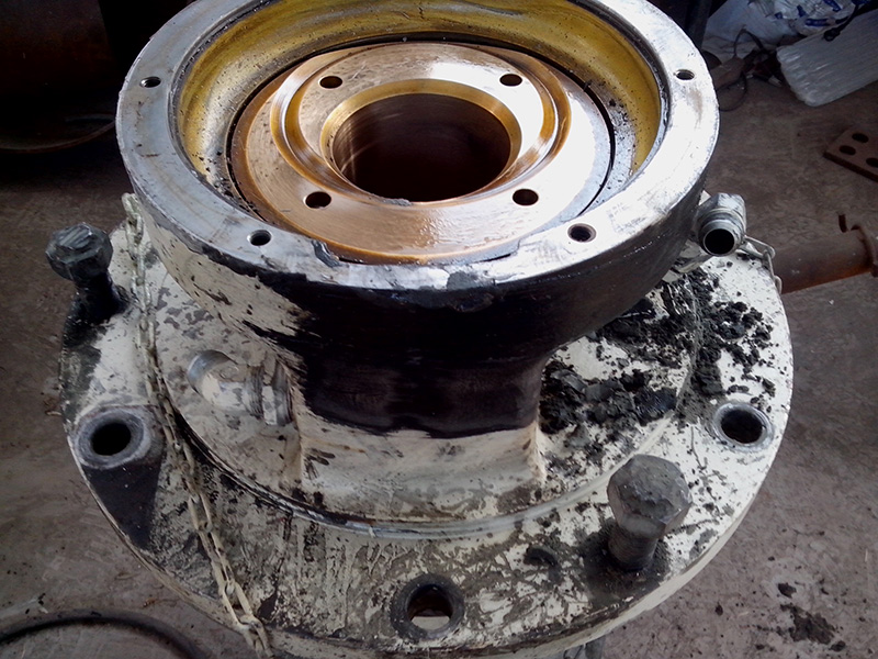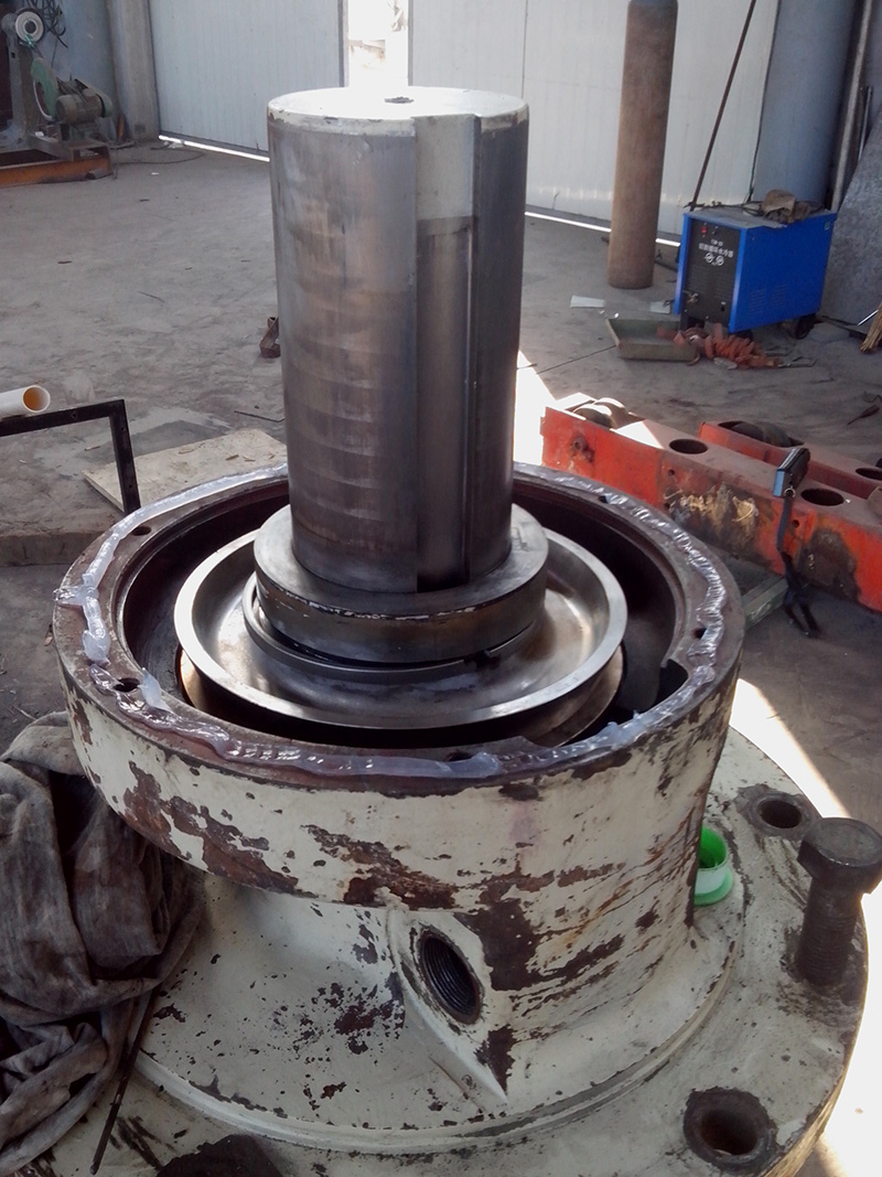 客戶HP500圓錐破碎機(jī)的水平軸殼體因過度磨損不能繼續(xù)使用,運(yùn)到我公司維修。由我司技術(shù)人員拆解水平軸總成,更換新的水平軸殼體,銅套,護(hù)板。